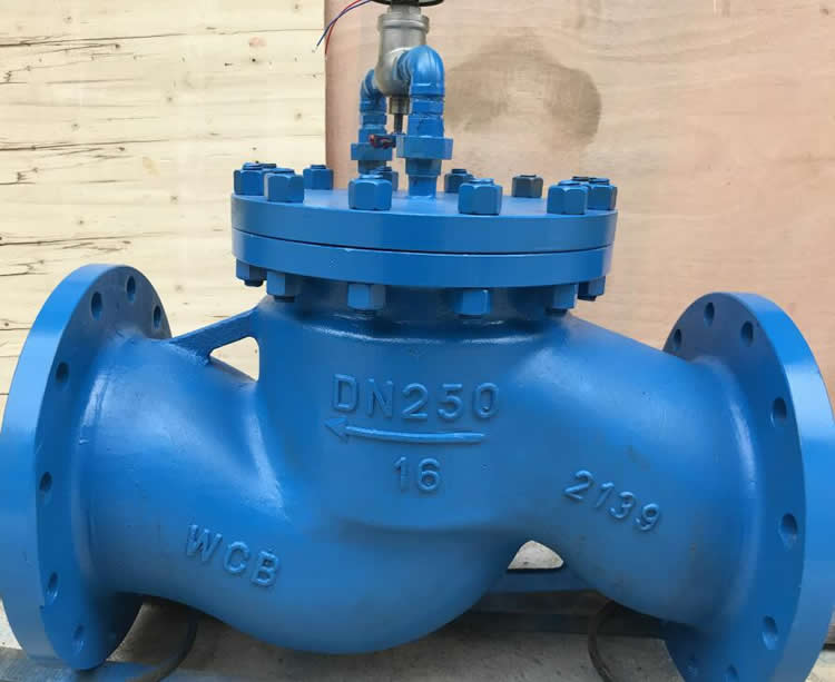 本阀为先导间接作用式电磁阀,线圈接受电信号后,导阀在电磁力作用下开启,减小了作用在大阀背腔的压力,在介质压力差作用下使大阀开启。线圈断电后,电磁力消失,导阀在弹簧力作用下关闭,大阀背腔压力平衡后,在弹簧力作用下关闭,同时依靠介质压力得以紧密关闭。